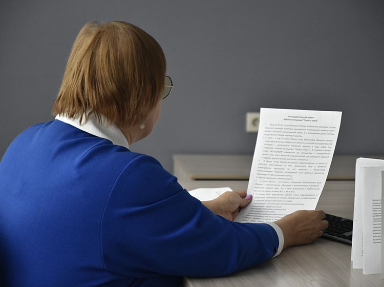 Галина Евгеньевна рассказала, что во времена Великой Отечественной войны наша библиотека и другие библиотеки региона вели информационную и агитационную работу: доставляли сводки Совинформбюро, оформляли газетные витрины и военные уголки, специалисты проводили лекции, беседы, читки. Библиотеки стали центрами патриотического духа, они снабжали заводы, госпитали и эвакуационные предприятия книгами, сотрудники проводили массовую работу с детьми и школьниками.
