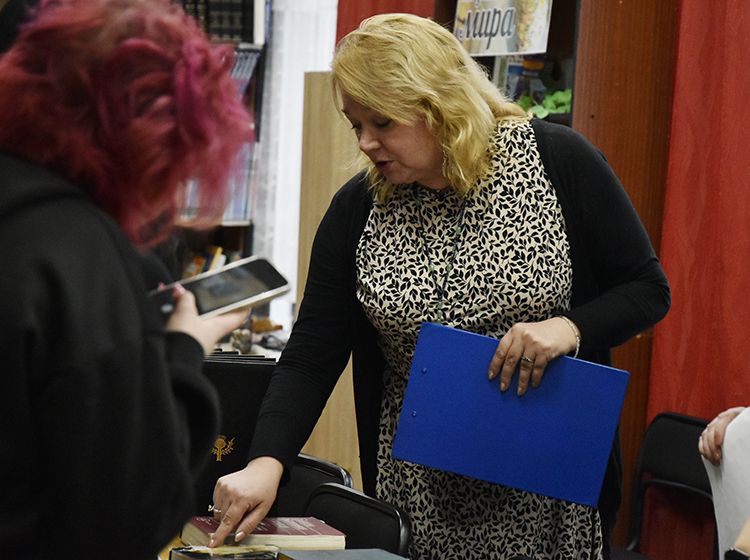 Сегодня библиотеку им. А.К. Югова посетили студенты Курганского технологического колледжа. Ребята приняли участие в «Библиографическом квесте» и мастер-классе «Русская вязь».