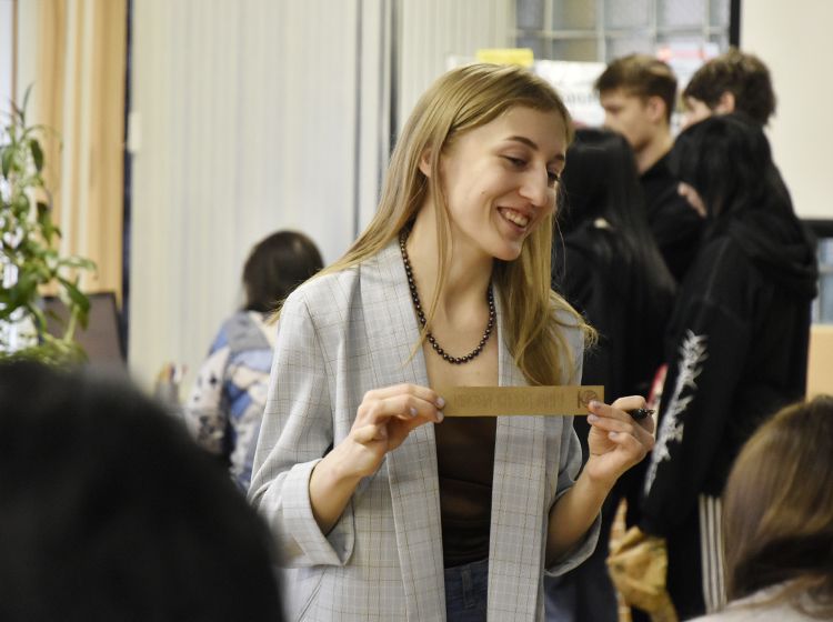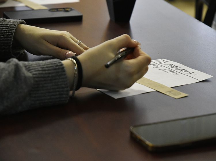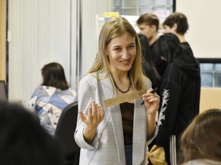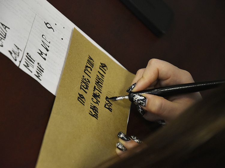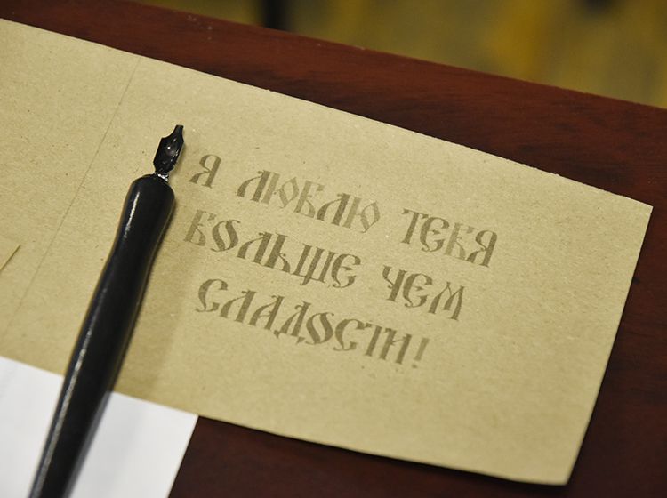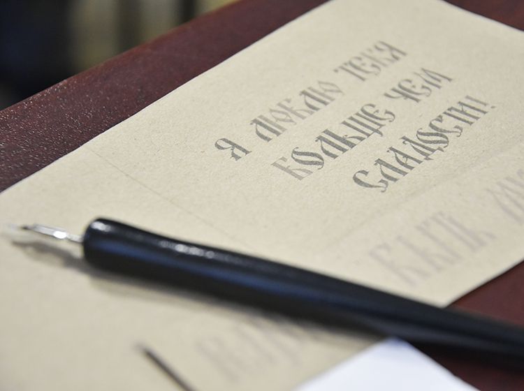Параллельно другая группа студентов на мастер-классе «Русская вязь» убедилась на практике, что «что было написано пером – не вырубишь топором». Они попробовали писать специальными чернилами, которые практически невозможно стереть, и узнали, что перо и чернила были главными атрибутами школьника вплоть до начала 1970-х. Также ребята увидели, как традиционная русская вязь сегодня живёт в современном дизайне, каллиграфии, искусстве и церковном оформлении.