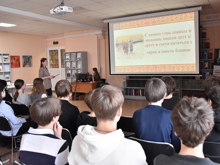 Сегодня библиотека открыла свои двери для восьмиклассников из Курганской гимназии № 32, где ребята погрузились в атмосферу древнего русского праздника на увлекательном квесте «Игра в Масленицу».