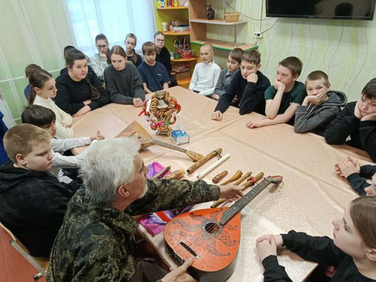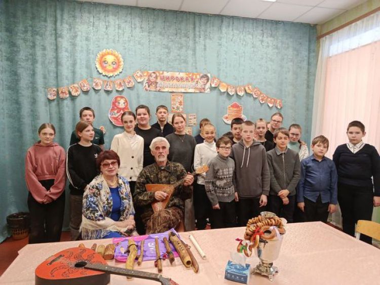 Нашим гостем был уникальный, самобытный человек, педагог, художник – Николай Рудольфович Ярош. Он провёл музыкальный мастер-класс, познакомив ребят с русскими народными инструментами: не только со всем привычной балалайкой, но и с более редкими – рожком, пастушьей флейтой, окариной, жалейкой.