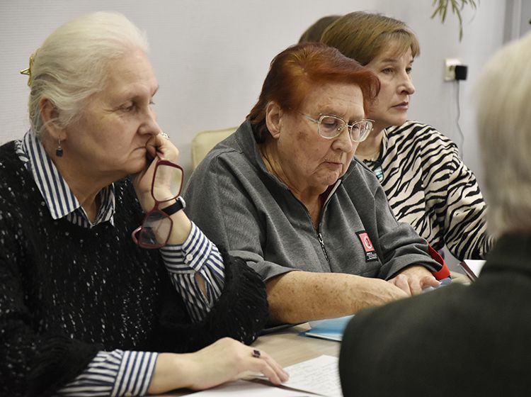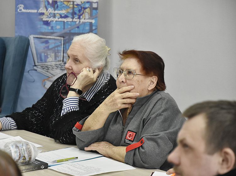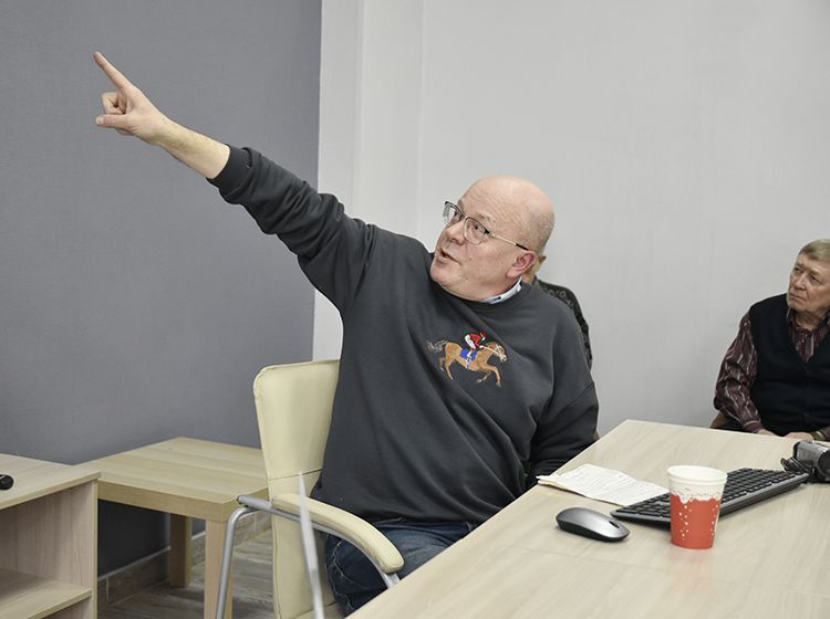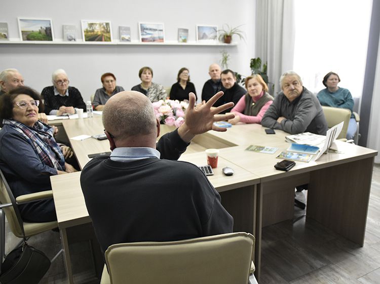 Участники встречи подробно спрашивали гостя о том, как он ведёт учёт своих записей, как использует в работе программу «Древо жизни», как передаёт свой опыт молодому поколению.