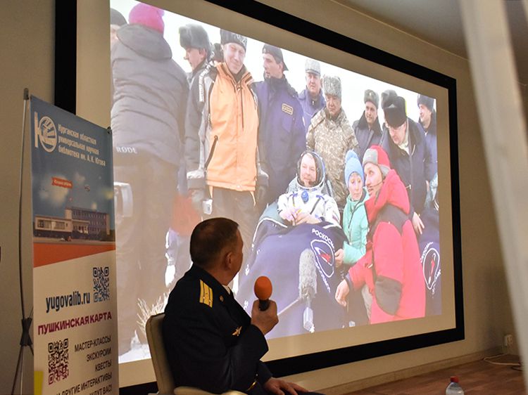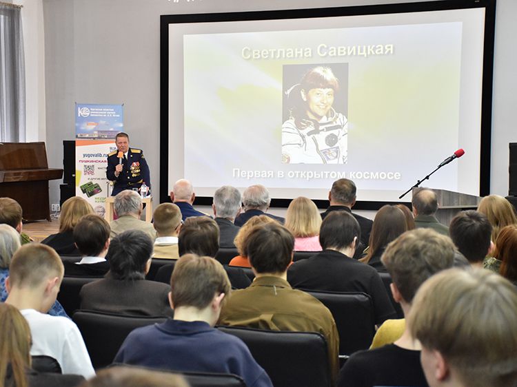 Студенты и старшеклассники пришли в Юговку, чтобы узнать о полётах в космос на встрече с полковником Валерием Пахомовым. Встречу организовали библиотека имени А. К. Югова совместно с Городским советом ветеранов.