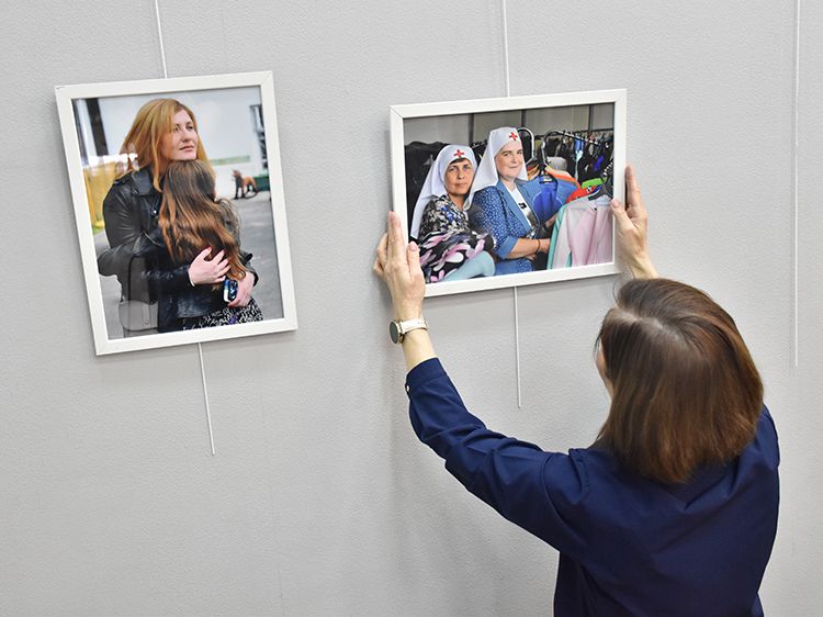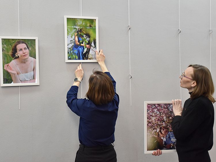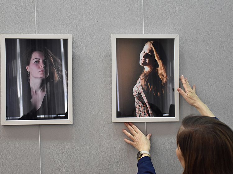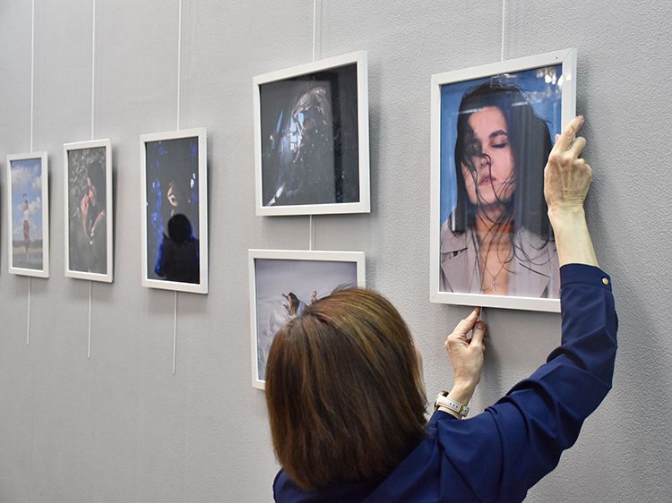 В эти минуты в библиотеке имени А. К. Югова идёт монтаж выставки «Женственность. Нежность. Красота» автора портретных фотоснимков, члена Союза журналистов России, фотографа Надежды Тихомировой.