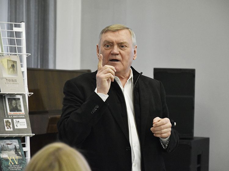 В библиотеке имени А. К. Югова сегодня многолюдно: собрались зауральские поэты и писатели, литераторы, издатели, историки, краеведы, библиотекари, ценители слова и книги. Всех объединила творческая встреча с председателем Тюменского регионального общественного благотворительного фонда «Возрождение Тобольска», фотохудожником, книгоиздателем, меценатом Аркадием Елфимовым.