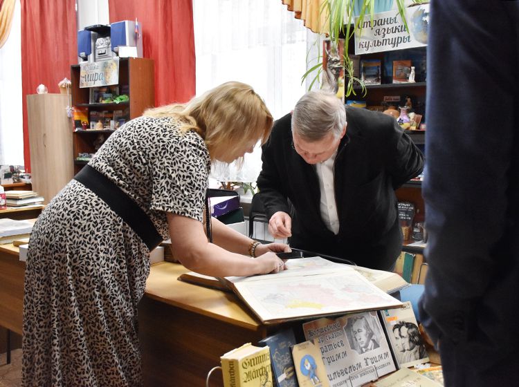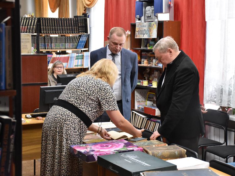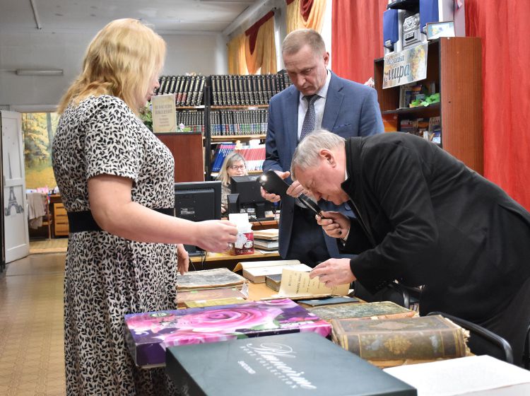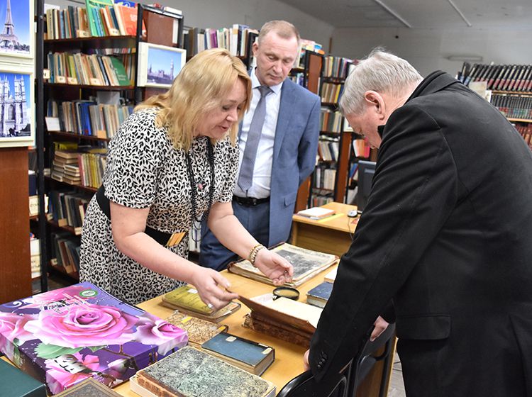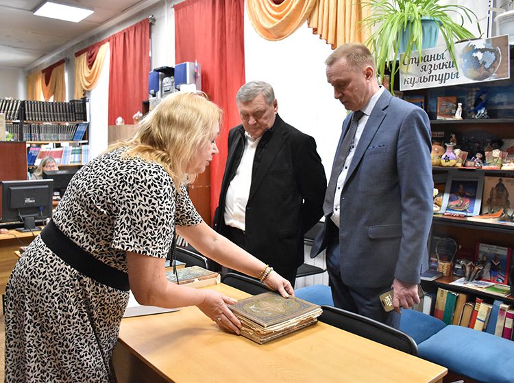 Издатель также познакомился с пространством библиотеки, где узнал о сокровищах Юговки. Особенно книгоиздателя заинтересовали редкие фолианты в Зале иностранной литературы, в которых упоминается Курганская область и Тобольск.