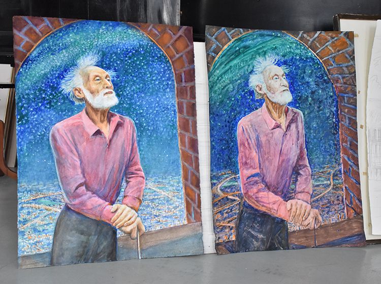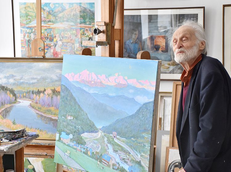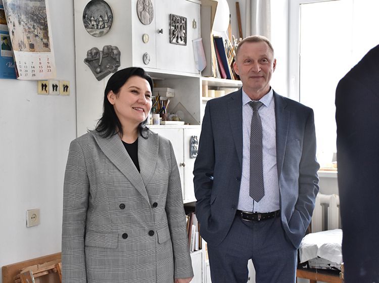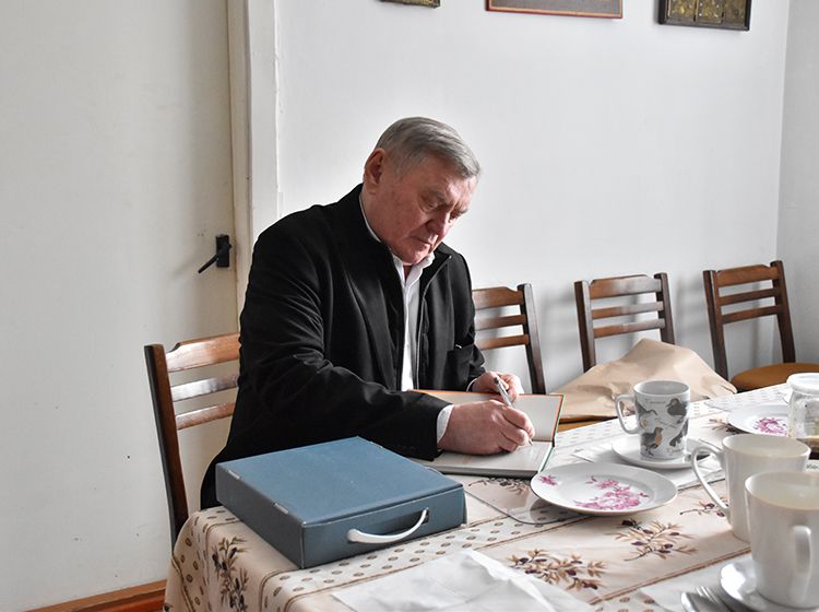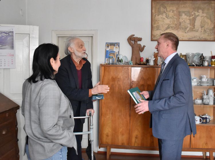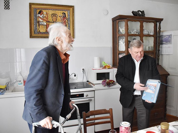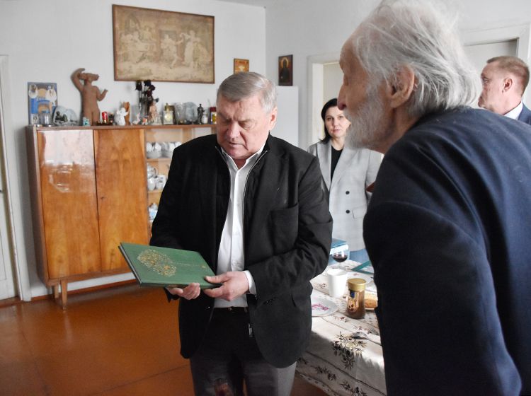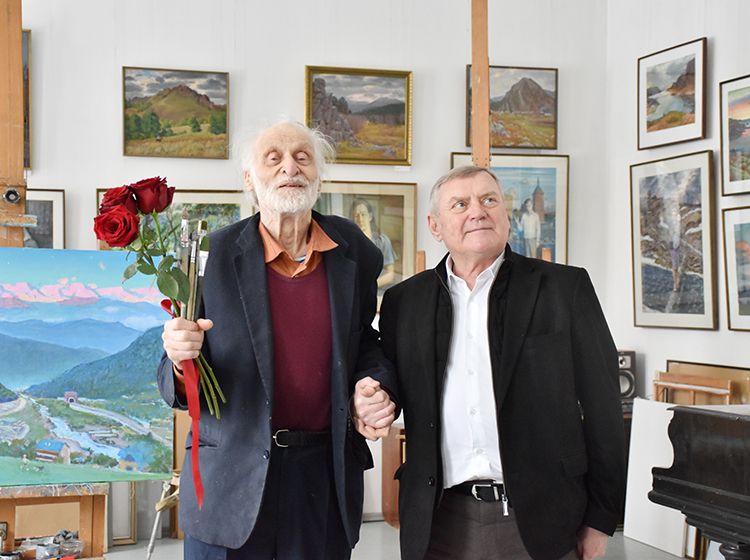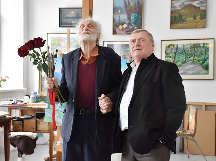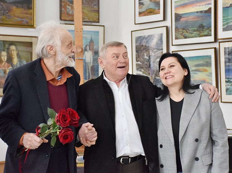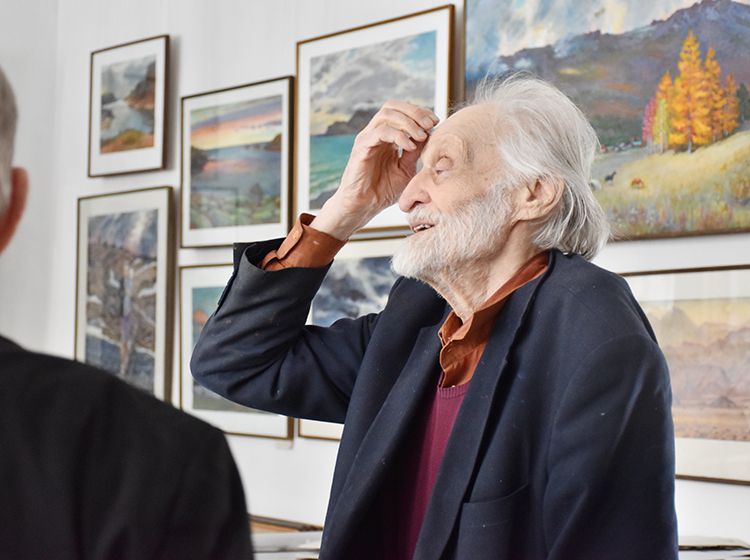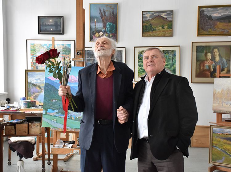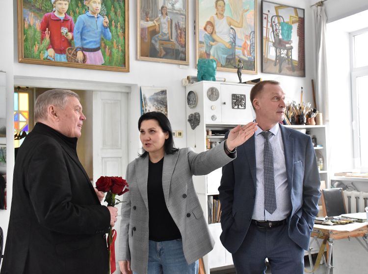 После экскурсии Аркадий Елфимов в компании директора библиотеки Игоря Постовалова и заместителя директора Ольги Бабушкиной отправился в гости к Народному художнику России Герману Травникову. Участники встречи обменялись памятными книжными подарками, а после акварелист показал гостям свою мастерскую, где представлены его работы в разных жанрах.