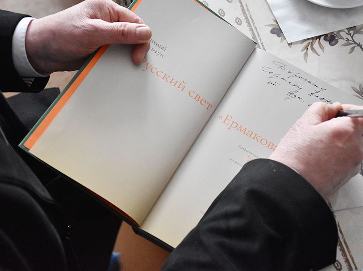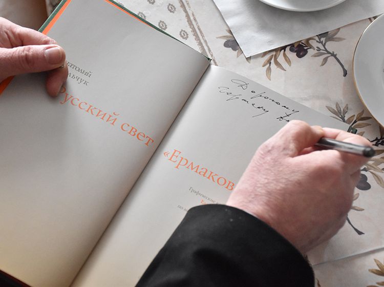 Участники встречи поблагодарили Аркадия Елфимова за интересный разговор, а Юговка вручила книгоиздателю Благодарственное письмо и сувениры.