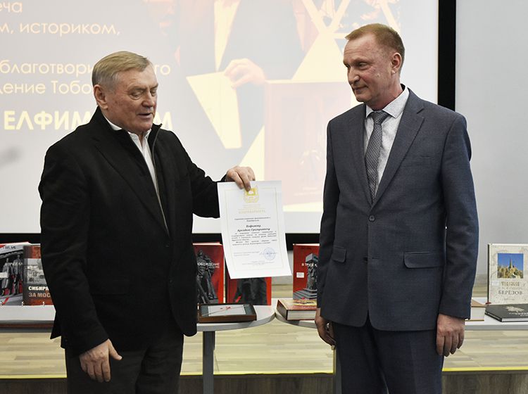 – 32 года назад я основал общественный благотворительный фонд «Возрождение Тобольска» и уже 32 года руковожу этой организацией. 28 февраля мы отметили наш день рождения. Дата вроде бы и не круглая, хотя мои друзья-айтишники говорят, что это сакральная дата, для математиков и айтишников значимы числа 16, 32, 64, 128 и так далее... Понятно, что срок уже достаточно приличный, и нас хорошо знают в основном благодаря нашей издательской деятельности. Мы подарили книги многим крупным библиотекам — от Национальной библиотеки Петропавловска-Камчатского до Калининграда, Мурманска, Архангельска, столицы. За эти годы наши издания получили в дар многие уважаемые библиотеки, в том числе и библиотека имени А. К. Югова, – поделился Аркадий Елфимов.