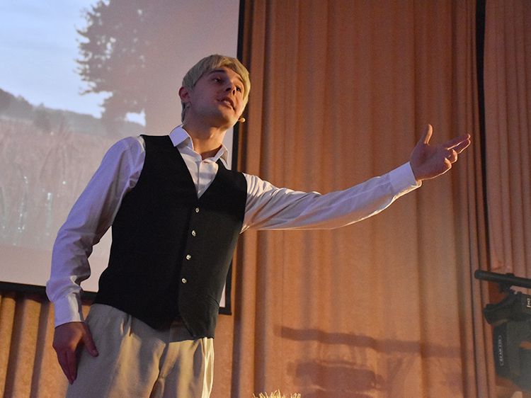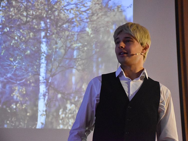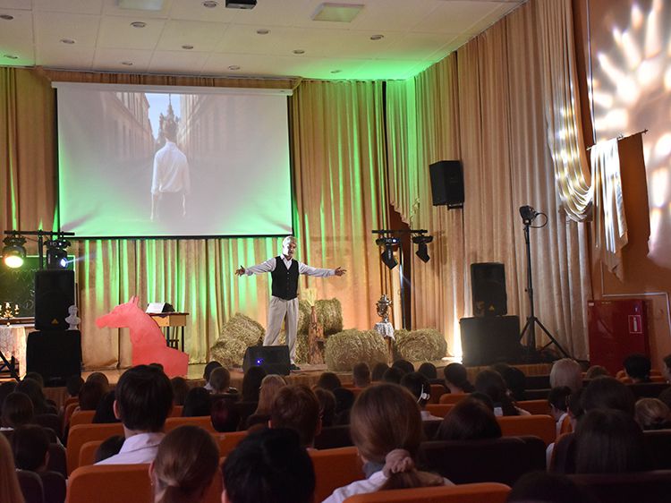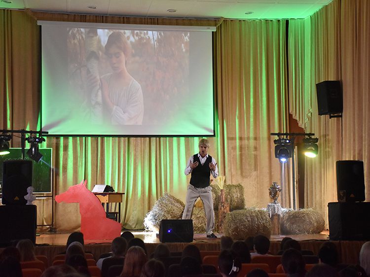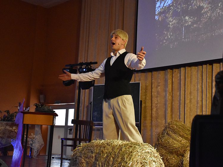 В эти дни в Юговке проходит повторный показ моноспектакля о жизни и творчестве великого русского поэта Сергея Есенина. Автор, режиссёр и исполнитель – артист Московского государственного академического детского музыкального театра имени Наталии Сац Руслан Офрин. Первыми спектакль увидели студенты медколледжа, куда артист и вся творческая группа приехали специально.