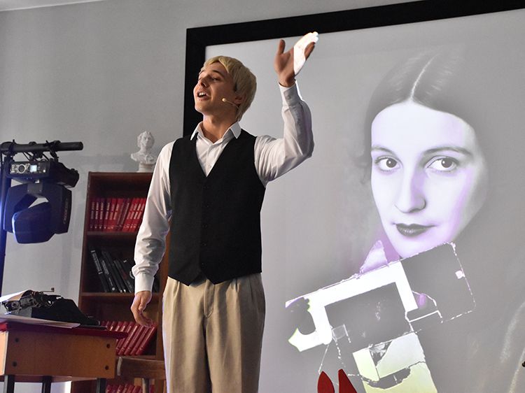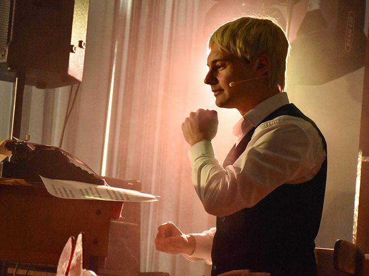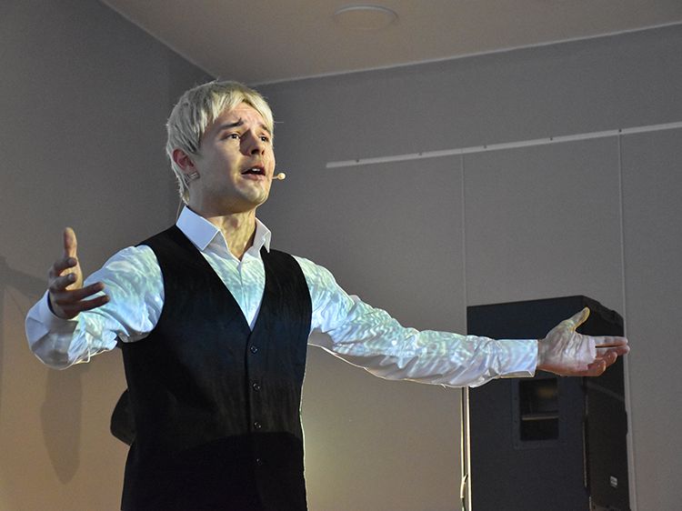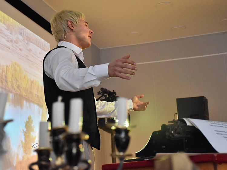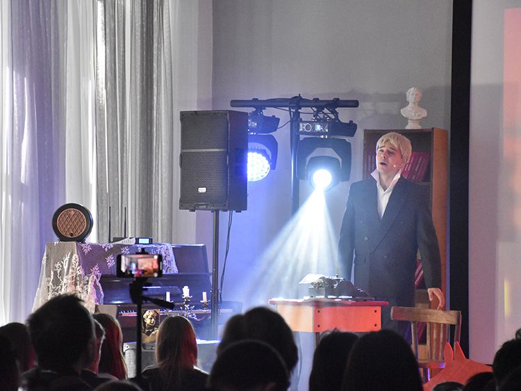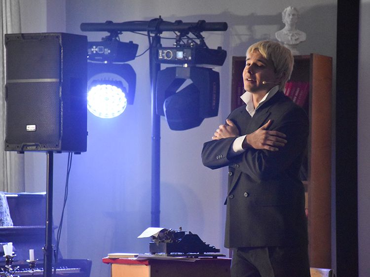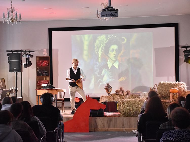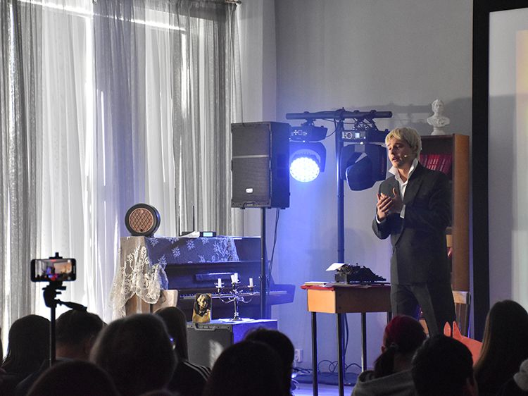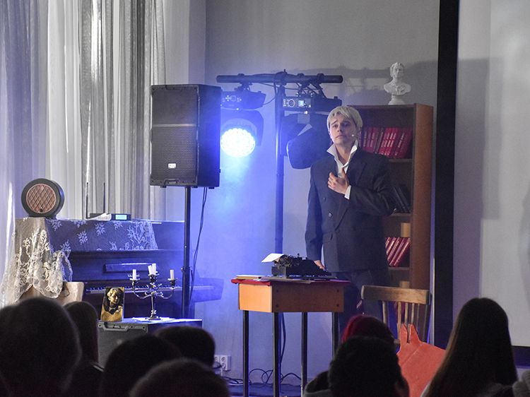 Режиссёр и исполнитель Руслан Офрин сыграл в Кургане три спектакля «Не жалею, не зову, не плачу…». Постановка уже была показана на сцене Юговки в ноябре 2025 года, его увидели около 1,5 тысяч зрителей, но не всех желающих вместил Концертный зал библиотеки. И в этот раз постановку увидели больше пятисот зрителей.