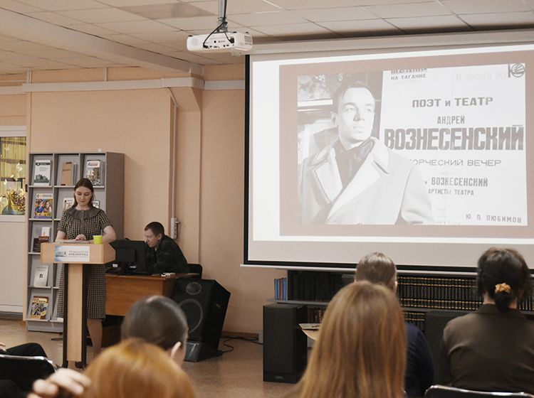 В библиотеке имени А. К. Югова первокурсники Курганского педагогического колледжа отправились в путешествие во времена оттепели. Ребята стали участниками литературной программы «Поколение бесстрашных романтиков», посвящённой творчеству легендарных поэтов-шестидесятников – Андрея Дементьева, Андрея Вознесенского и Евгения Евтушенко.