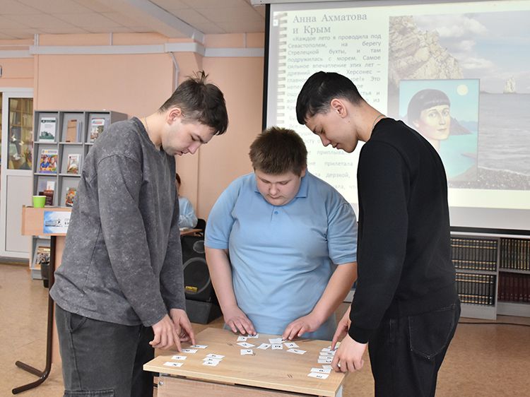 Ребята узнали, что, благодаря живописным пейзажам Крыма, богатой культуре и особой атмосфере были созданы произведения, ставшие классикой мировой литературы. В ходе встречи специалист Центра чтения Раиса Саморукова рассказала о творческом пути известных авторов: Пушкина, Чехова, Толстого, Цветаевой, Ахматовой, Булгакова, Горького, Маяковского, Паустовского, Бунина, а также о том, как пребывание в Крыму повлияло на развитие их литературной деятельности.