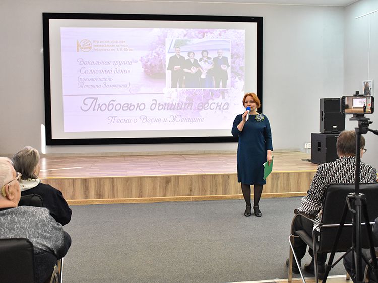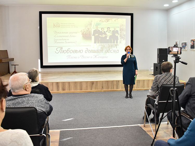 В Концертном зале Юговки сегодня звучали красивые и нежные песни: это «Любовью дышит весна» – концерт в исполнении вокальной группы «Солнечный день» (руководитель – Татьяна Замятина).