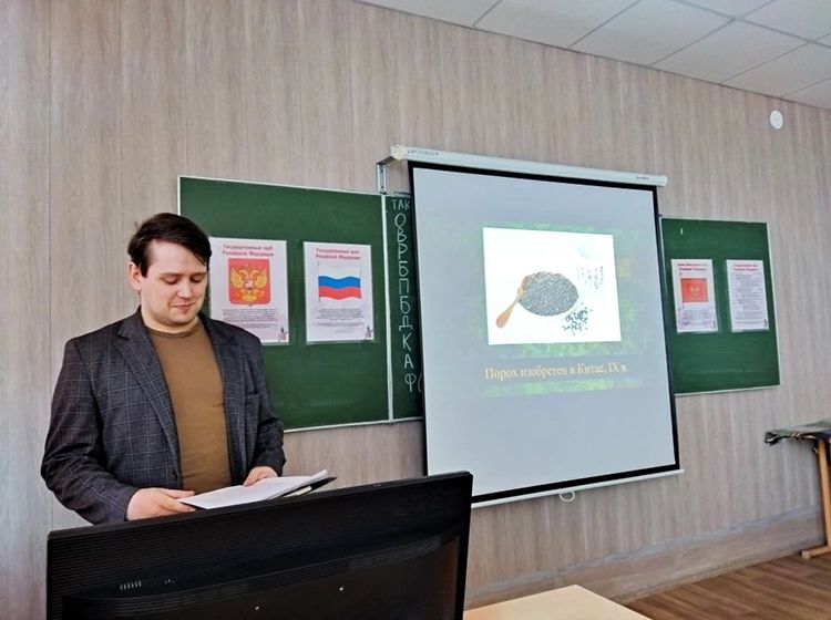 24 марта в Курганском промышленном техникуме прошло открытое занятие, посвященное эволюции огнестрельного оружия. Специалист Центра поддержки технологий и инноваций Игорь Комиссаров погрузил студентов в тему: от китайских алхимиков IX века, открывших порох, до современных моделей оружия.
