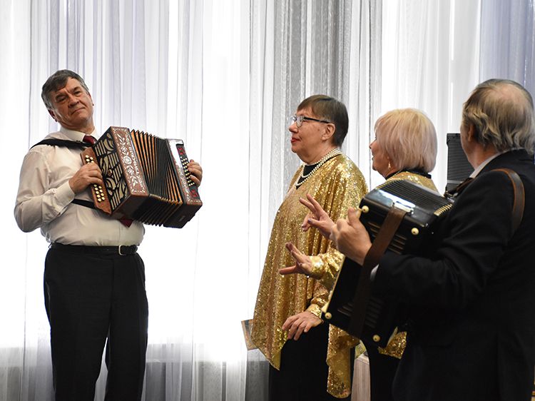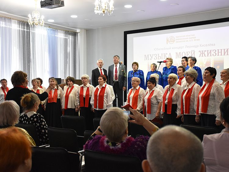 В репертуаре Леонида Киселёва самые разные песни: народные, песни советских композиторов, современные, частушки. Творческие коллективы, в составе которых он выходит на сцену, объединяет большая и крепкая дружба, любовь к Родине, к природе, к общению, к музыке. Открыл встречу хор ветеранов «Поющие сердца» песней о Курганской области.