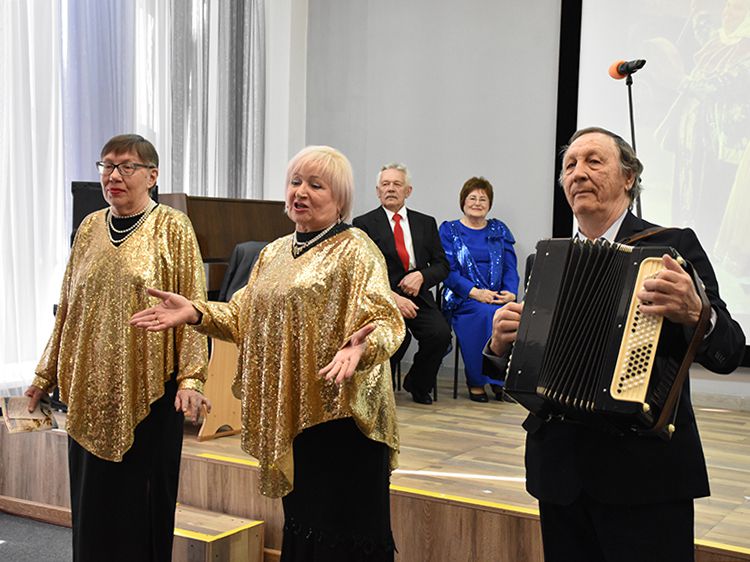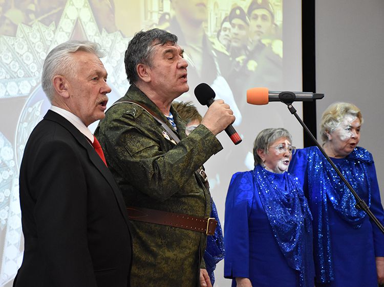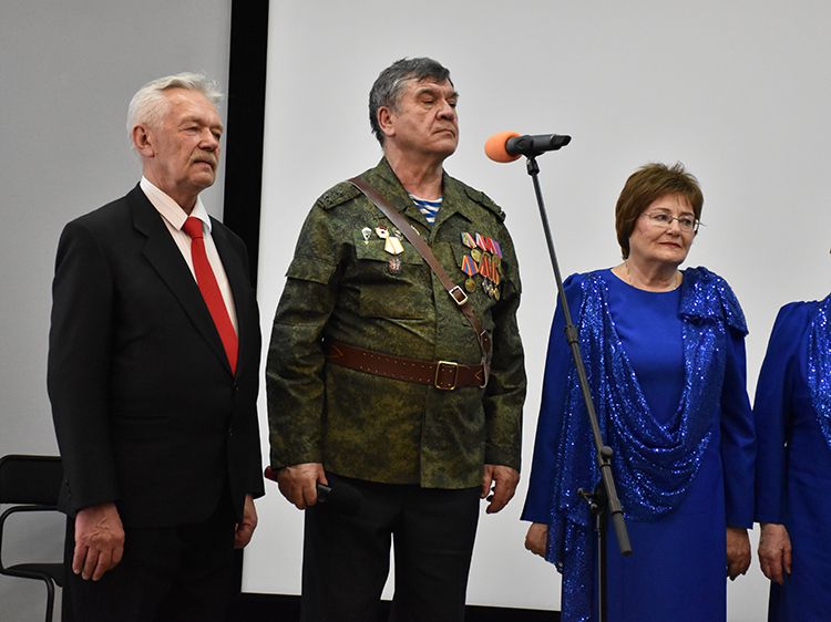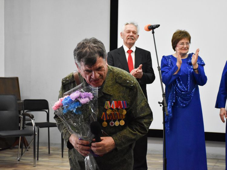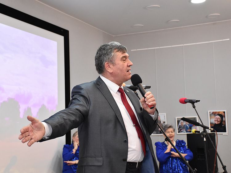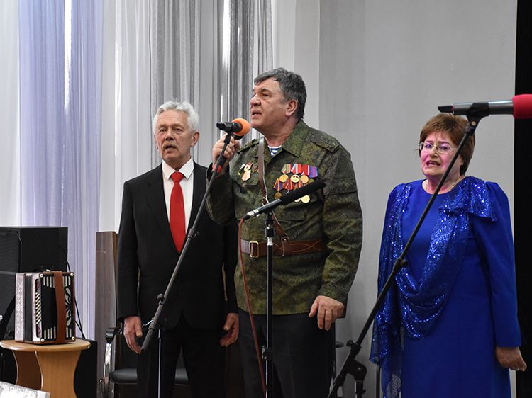 А дальше юбиляр взял в руки микрофон. В праздничном концерте прозвучали песни, которые связаны с биографией и яркими моментами жизни вокалиста: «Песня о Кургане» Е. Липихина, «Петухи на заборе» В. Кораблина, «Синеглазая Россияночка» Ю. Щекотова, «Я по тебе скучаю» Е. Кемеровского и другие. Вместе с Леонидом Киселёвым на сцену один за другим поднимались его любимые коллективы. И созвучие голосов дарило радость творчества зрителям, которые с благодарностью аплодировали артистам.