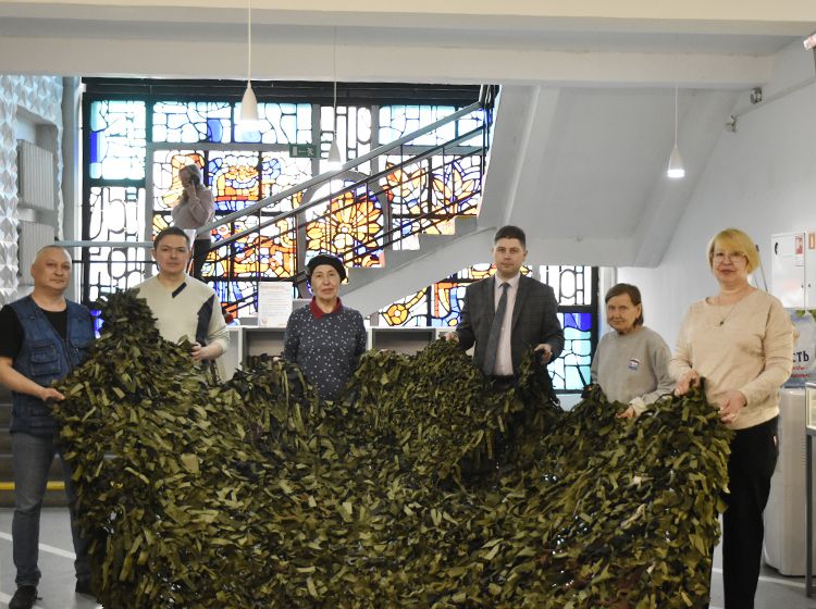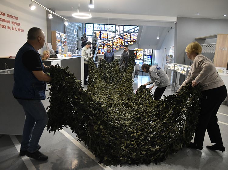 Сотрудники библиотеки имени А. К. Югова, волонтёры Центра общения старшего поколения регионального отделения Социального фонда России и представители партии «Единая Россия» передали «за ленточку» сразу три маскировочные сети. Ещё одна сеть уже в работе и в ближайшее время также будет отправлена бойцам. Ценный груз отправится на Краснолиманское направление.