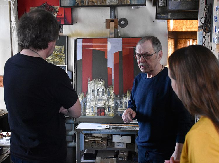Большое внимание уделили и самой мастерской, которая расположена в доме, построенном в 50-е годы прошлого века. Здание является объектом культурного наследия регионального значения и частью градостроительного ансамбля Центральной площади. Гостям посчастливилось насладиться видами города с крыши исторического дома.