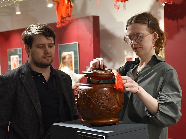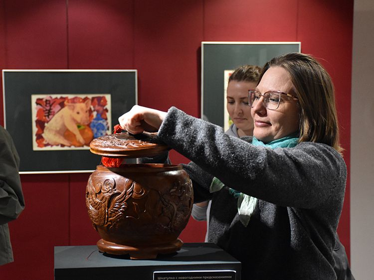 Сотрудники Юговки посмотрели экспозицию из собрания Государственного музея истории религии (г. Санкт-Петербург) и познакомились подробнее с историей Китайского Нового года, обычаями праздничного ужина и декорирования дома, традиционными видами подарков.