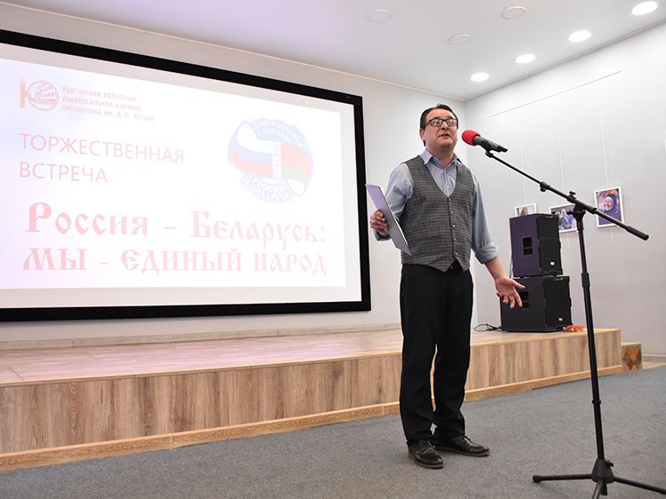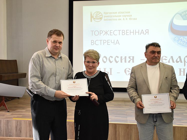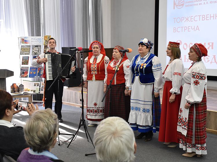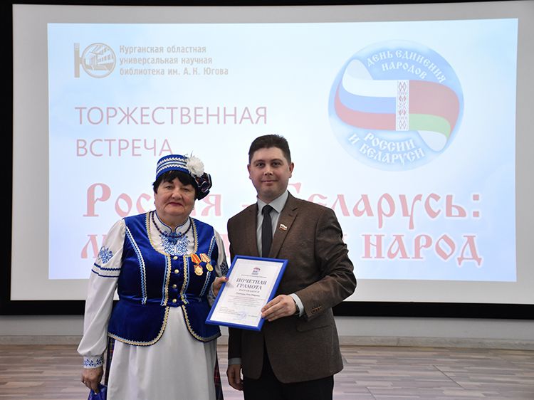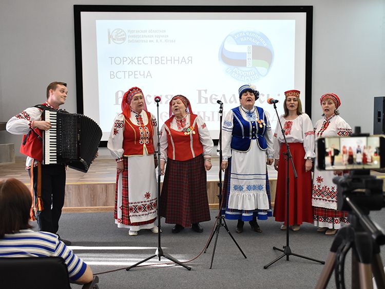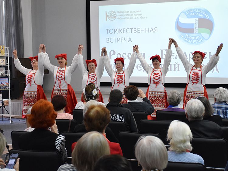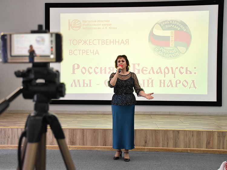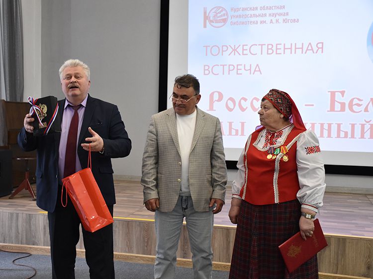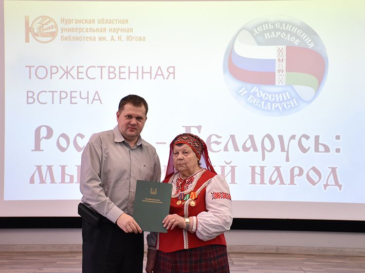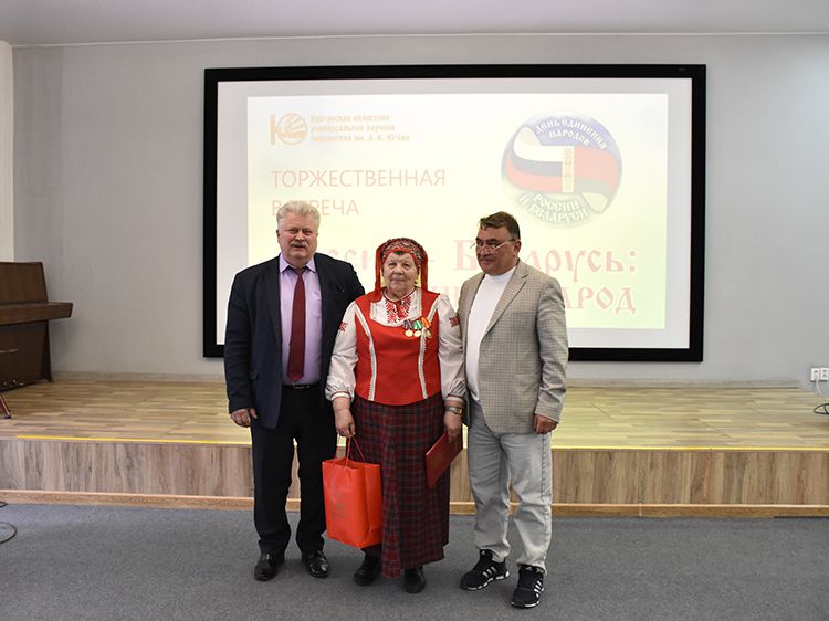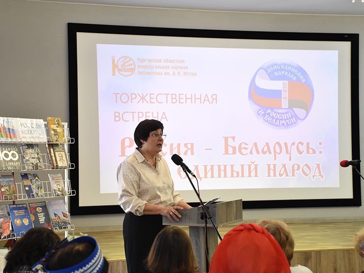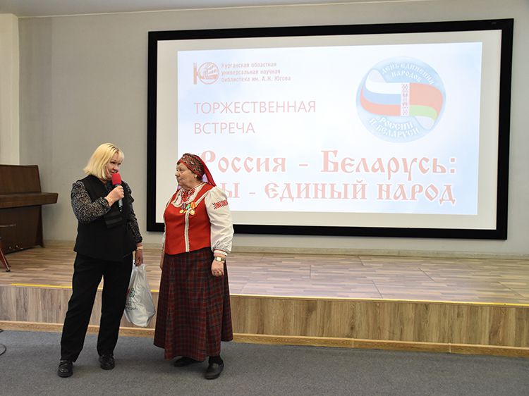– Наша библиотека много лет дружит с Ассамблеей народов Зауралья и, конечно, с Национальным центром белорусской культуры «Батькавщина». Мы ведём проект «Россия – Казахстан - Беларусь: творческие встречи онлайн», в котором мы ведём диалог с коллегами из национальных библиотек, в том числе, и с сотрудниками Минской областной библиотеки имени А. С. Пушкина, обсуждаем темы культуры, творчества, патриотизма, сохранения истории – темы, которые интересны всем государствам. И, конечно, постоянно в диалоге участвует Центр «Батькавщина». И такой праздник – День единения России и Белоруссии мы не могли пропустить. Это наш общий праздник добра и дружбы, – отметила специалист Юговки, главный библиотекарь Курганского регионального центра чтения Раиса Саморукова.