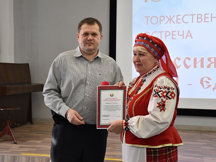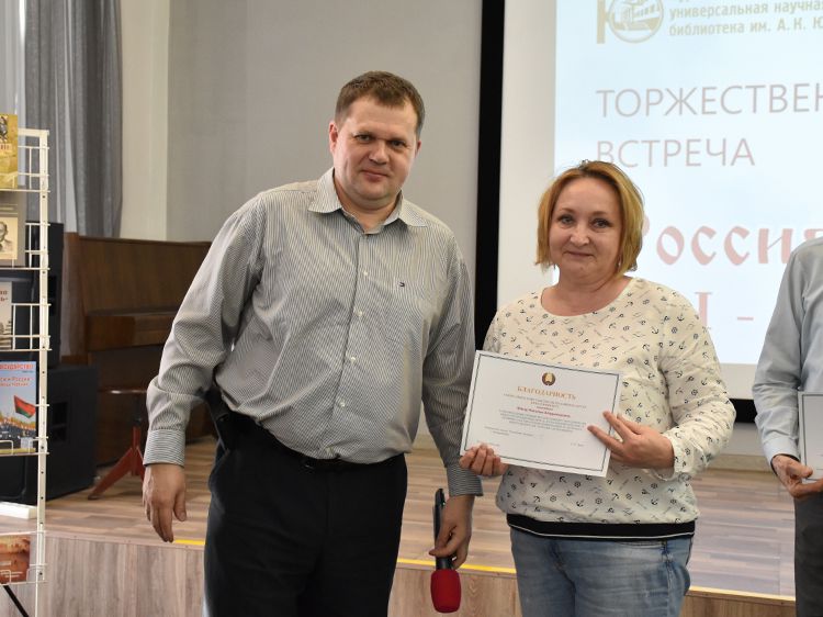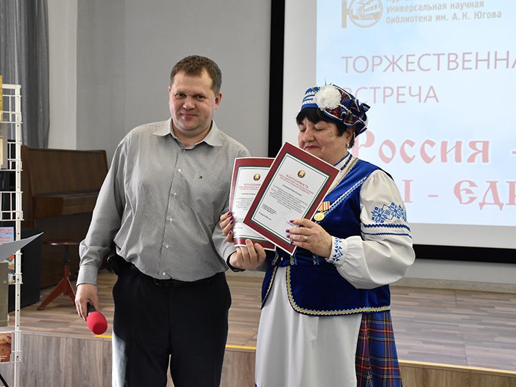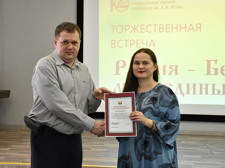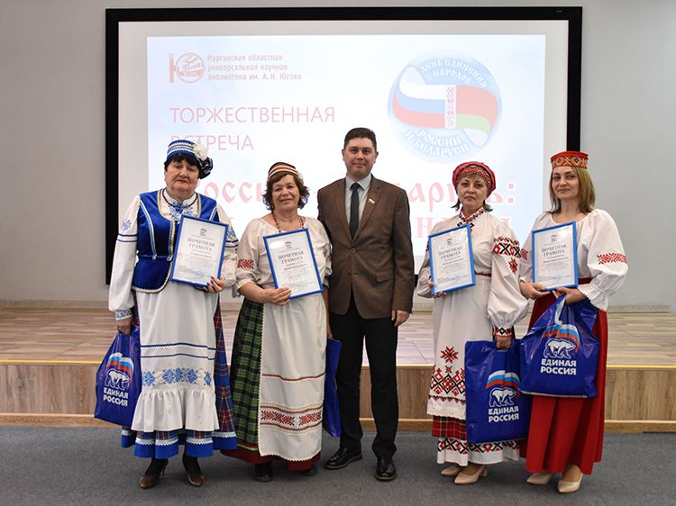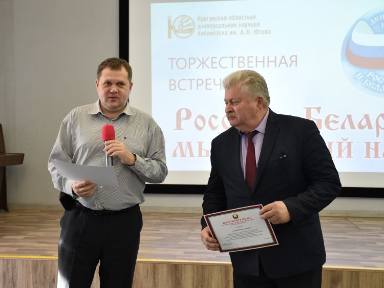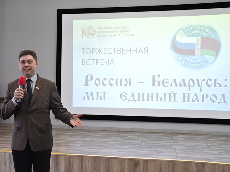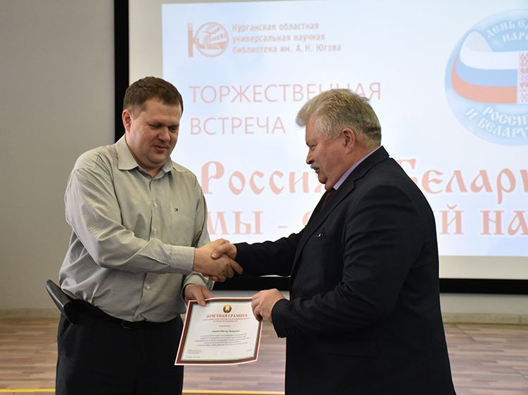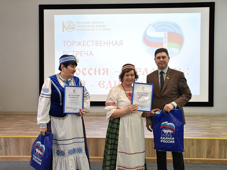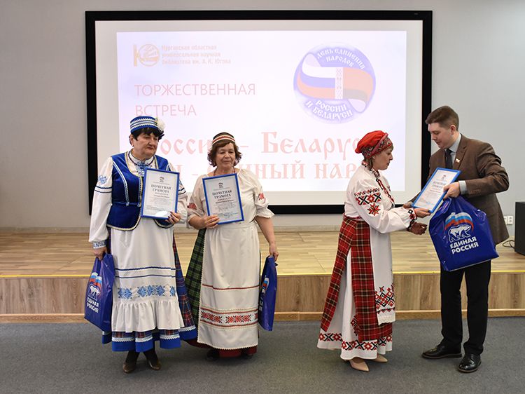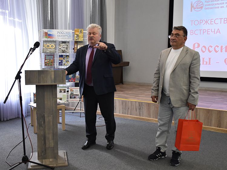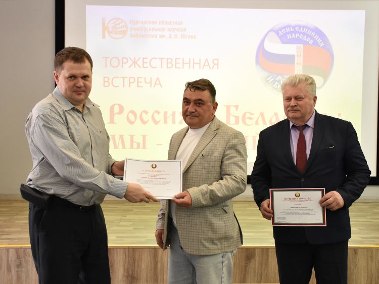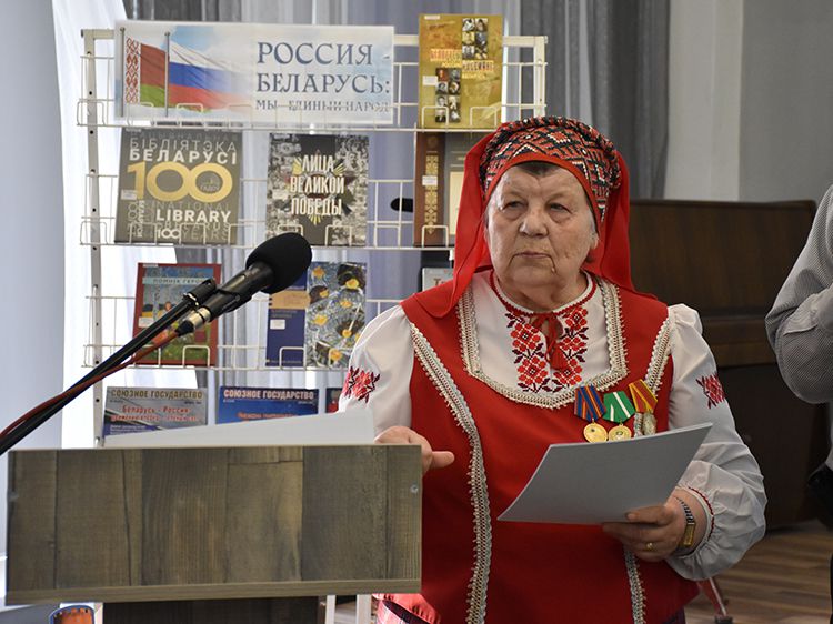 – Наша библиотека много лет дружит с Ассамблеей народов Зауралья и, конечно, с Национальным центром белорусской культуры «Батькавщина». Мы ведём проект «Россия – Казахстан - Беларусь: творческие встречи онлайн», в котором мы ведём диалог с коллегами из национальных библиотек, в том числе, и с сотрудниками Минской областной библиотеки имени А. С. Пушкина, обсуждаем темы культуры, творчества, патриотизма, сохранения истории – темы, которые интересны всем государствам. И, конечно, постоянно в диалоге участвует Центр «Батькавщина». И такой праздник – День единения России и Белоруссии мы не могли пропустить. Это наш общий праздник добра и дружбы, – отметила специалист Юговки, главный библиотекарь Курганского регионального центра чтения Раиса Саморукова.