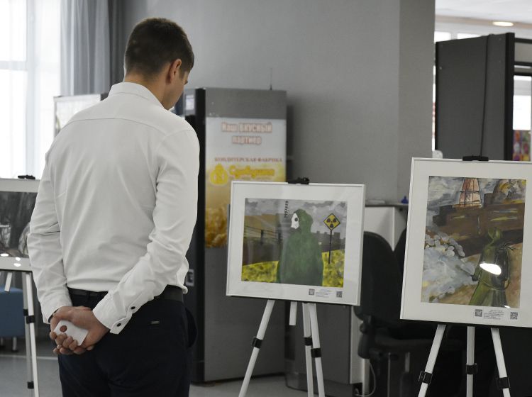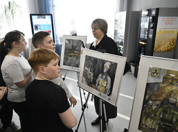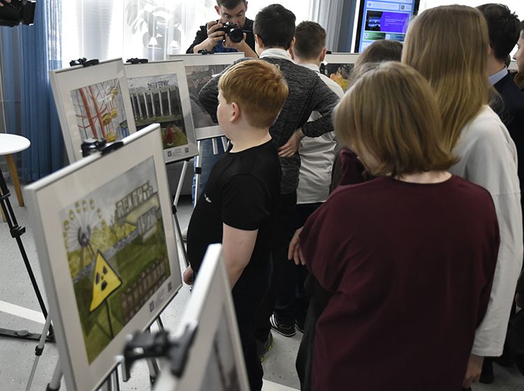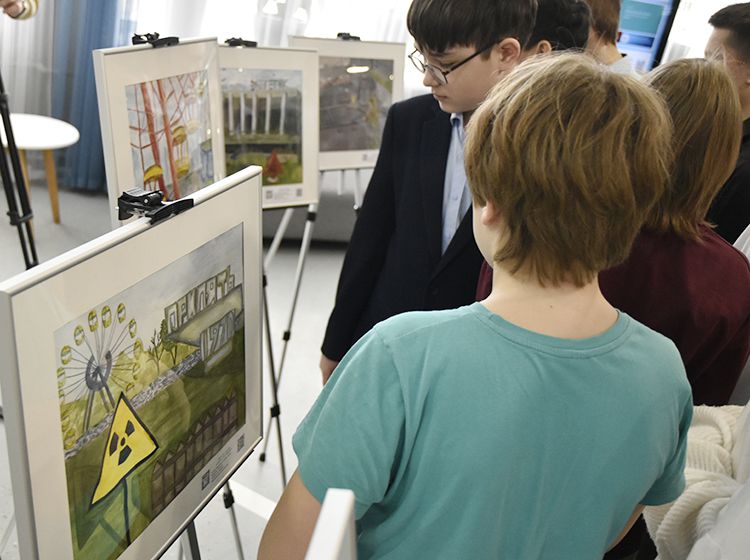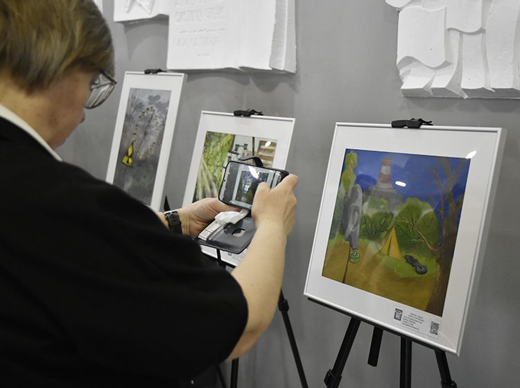 На открытии выставки гости познакомились с работами юных художников, пообщались с авторами, заинтересовались книгами об истории ликвидации катастрофы.