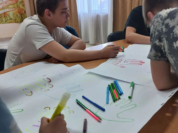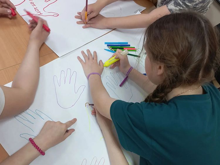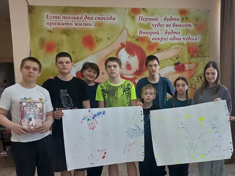 Ребята полистали книги из фондов Юговки о дружбе, любви и верности и приняли участие в мастер-классе «Ладошка пожеланий», где они оставили тёплые слова для своих родных, воспитателях и друзьях.