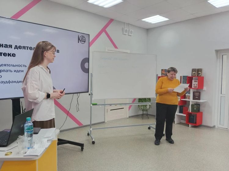 Программа семинара «Проектная деятельность в библиотеке» включала теоретическую и практическую части. В рамках теоретического блока специалисты Юговки раскрыли следующие вопросы: источники формирования проектных идей, методы поиска партнёров и выстраивания взаимодействия с ними, а также обзор действующих грантовых конкурсов федерального, регионального и частного уровней, доступных для участия муниципальных библиотек.