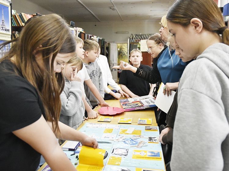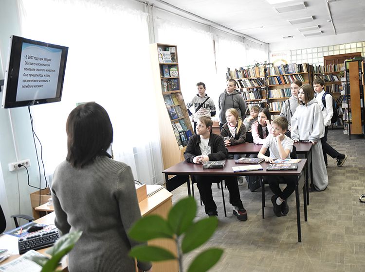 Неделя космонавтики в библиотеке продолжается! Сегодня Юговка превратилась в Международную космическую станцию – сотрудники библиотеки провели командную игру «Через тернии – к звездам!» для юных школы №59.
