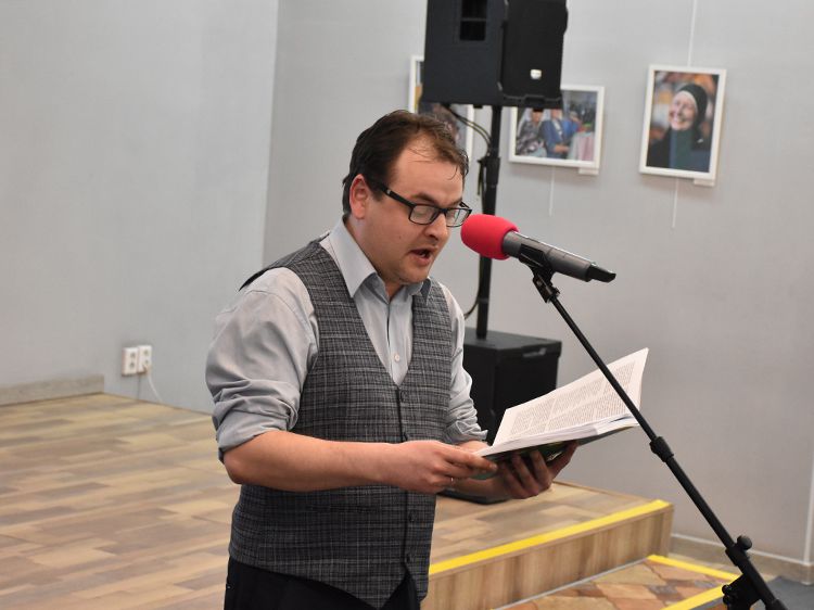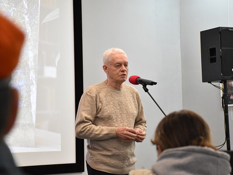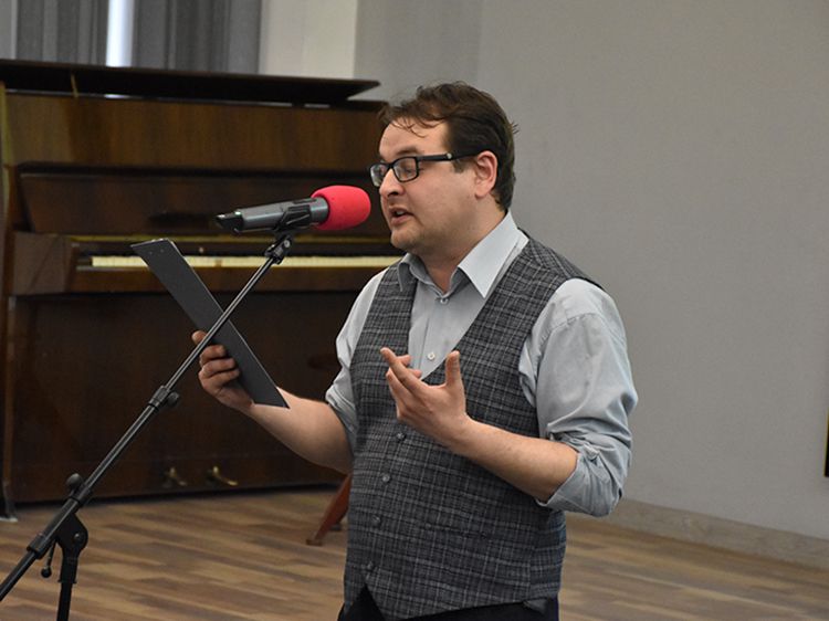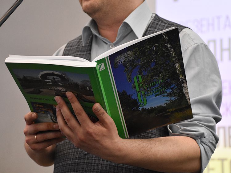 Фронтовые строки Андрея Ветрова, опубликованные в свежем номере «Родника», прозвучали на презентации в исполнении актёра, музыканта, сотрудника библиотеки имени А. К. Югова Николая Бардина.