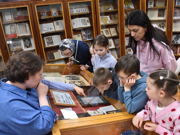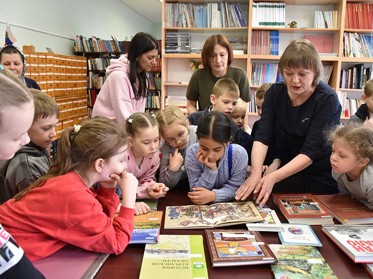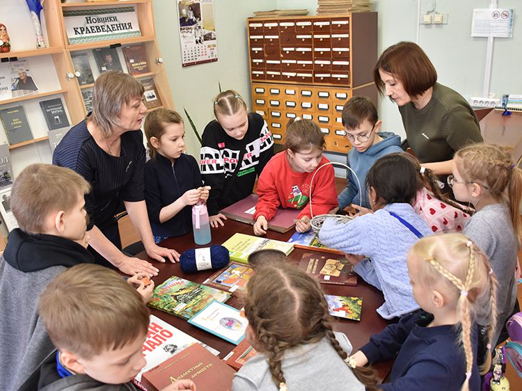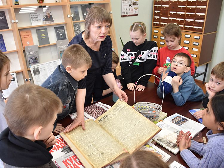 Воспитанники Курганского дворца детского и юношеского творчества пришли в Юговку, чтобы познакомиться с главным книгохранилищем Курганской области, его историей и тайнами.