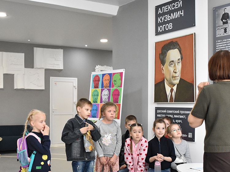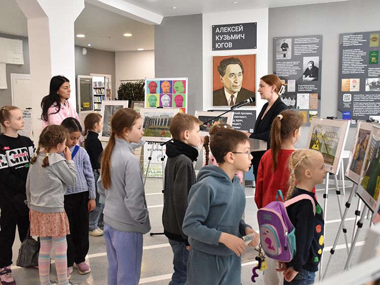 В рамках экскурсии школьники посетили выставку картин «Чернобыль глазами детей», представленную работами воспитанников художественной школы имени В. Ф. Илюшина. Экспозиция из 19 работ посвящена 40-й годовщине аварии на Чернобыльской АЭС и подвигу ликвидаторов. Специалист Регионального Центра чтения Юговки Рита Коровина рассказала ребятам о катастрофе и сопроводила рассказ показом тематической литературы. Гости рассмотрели рисунки авторов, которые отразили масштаб крупнейшей техногенной аварии XX века, и обсудили увиденное.