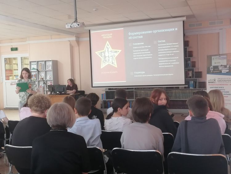 В отделе абонемента юные гости отгадывали, сколько городов-героев в России и какие названия они носили раньше, в зале патентно-технической литературы услышали об изобретателях военной технике и оружии времён Великой Отечественной войны. В отделе краеведения ребятам напомнили о зауральцах, которые сражались на фронте, а также вспомнили улицы Кургана, названные в честь земляков-зауральцев. В центре общественного доступа сопоставили основные даты и события Великой Отечественной войны. А в зале гуманитарной литературы вспомнили не только ключевые исторические факты о легендарной антифашистской организации «Молодая гвардия», но и соприкоснулись с героическим подвигом молодогвардейцев.