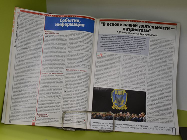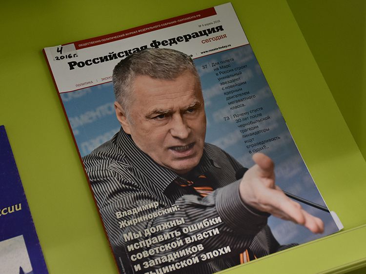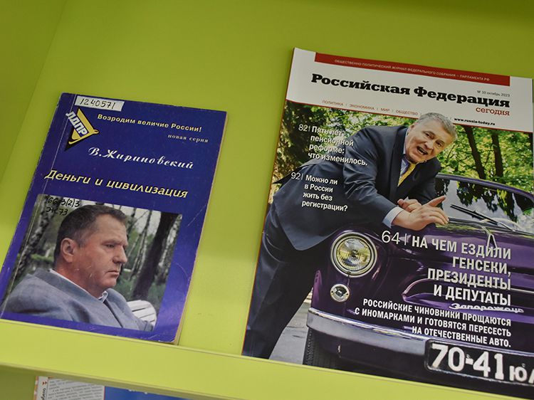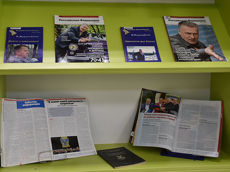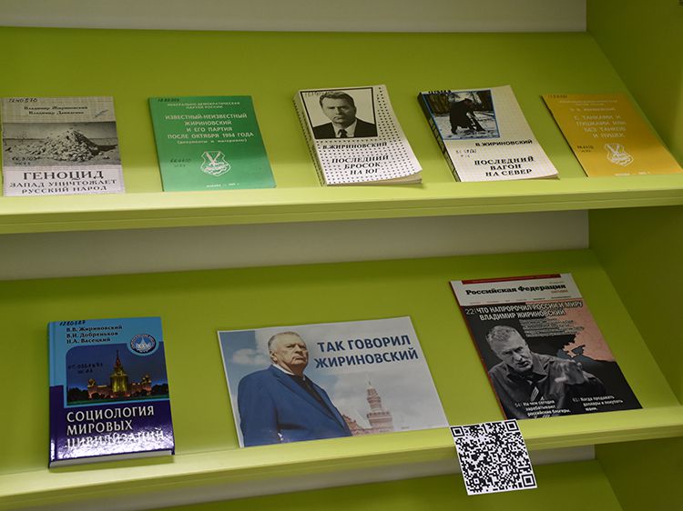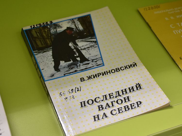 Специалисты Зала гуманитарной литературы Юговки подготовили выставку-портрет «Так говорил Жириновский», которая раскрывает его политическую биографию. На выставке представлены многочисленные интервью Владимира Вольфовича и его политические программы, учебная литература, которая подготовлена самим политиком, записанные им самим протоколы заседаний партии.